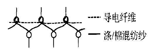 同時,控制導(dǎo)電纖維的張力T電略大于基礎(chǔ)組織紗線的張力T基,即T電>T基,這樣,就能保證導(dǎo)電纖維被基礎(chǔ)組織紗線覆蓋。