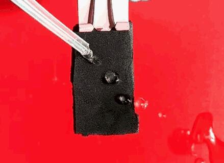 圖4 不沾不濕,水滴一抖即落的電磁屏蔽材料(圖中黑色是超疏水的電磁屏蔽材料,黑色上面的物質是灰塵,用水一沖立即干凈)