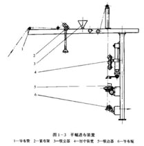 平幅山布裝置分擺功落命裝置和卷裝次布裝置兩大類。擺動落布裝置的作用是將織物送出礬合并整齊地折疊到堆布車中,一般有落布輥式和落布斗式兩種,對于布速較高者,則采用可移式落加裝置。擺功落布裝置足由兩套平面四連桿機構組成,擺動范圍可調.落布輻式適用各種場合.落布斗式主要應用于蠶絲織物或毛織物的平幅落布,即車速較低的場合。可移式落布裝置適用于布速大于80m/min落布場合,便于調換布車。