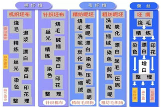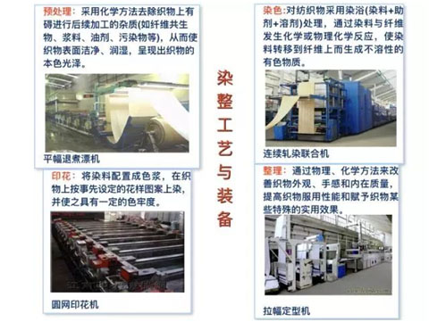 染整工藝過程可歸納為預處理、染色、印花和整理四類。
