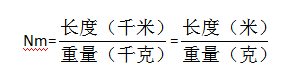 以一千克重量中的千米數量表示或以一克重量中的米數表示(一般用于纖維、毛、麻紡織)