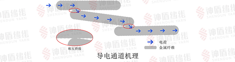 纖維混紡導(dǎo)電紗的導(dǎo)電機(jī)理有三種,即:導(dǎo)電通道機(jī)理、隧道效應(yīng)機(jī)理、場致發(fā)射機(jī)理。