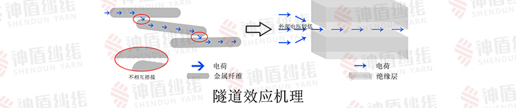電紗線中,金屬纖維之間不能相互搭接,但其間距較小,無法形成鏈狀導(dǎo)電通道的情況下,外加電壓較低時,隧道效應(yīng)導(dǎo)電機(jī)理起主導(dǎo)作用;