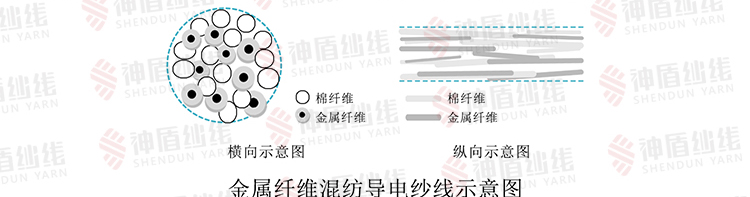 金屬纖維混紡導(dǎo)電紗線,是由金屬短纖維與普通的常規(guī)纖維按一定比例混紡制成的導(dǎo)電紗線,它是一種導(dǎo)電成份非均一性的導(dǎo)電紗線。它以普通的常規(guī)纖維為主體,以金屬纖維為導(dǎo)電成份。金屬纖維在此類紗線中的分布,從縱向看是大體均勻的分布,從橫截面看呈隨機(jī)分布狀態(tài),也就是說金屬纖維在導(dǎo)電紗線中不可能完全達(dá)到多相均勻分布狀態(tài)。