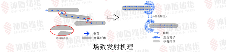 電紗線中,金屬纖維之間不能相互搭接,但其間距較小,無法形成鏈狀導(dǎo)電通道的情況下,外加電壓較高時,場致發(fā)射導(dǎo)電機(jī)理起主導(dǎo)作用。